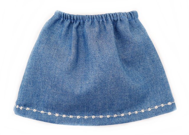 Puppenkleidchen für Puppengröße 30cm aus Baumwolljeans Die Puppenkleidchen sind durch Knöpfe oder Klettverschluss einfach zum Bekleiden.