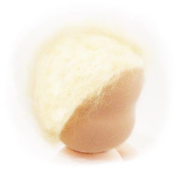 PUPPENHAARE AUS GLATTMOHAIR-Wollgarn Haarlänge Flaum (78% Mohair,19% Schurwolle, 3% Polyamid). Sehr feine, weiche Mohairfaser, bedingt strapazierfähig, frisierbar (eingeschränkt kämmbar), bei gutem Umgang langlebig, natürliche Verfilzung