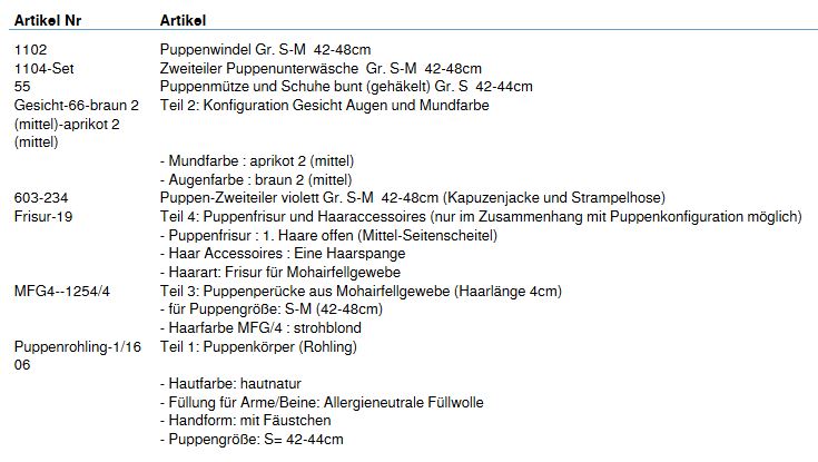 Alle verfügbaren Puppenkinder auf einen Blick anzeigen