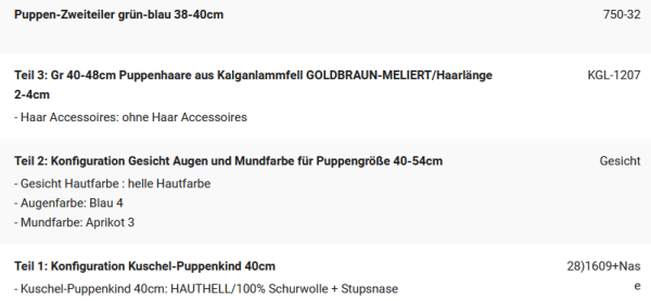 Über den Wunschpuppenkonfigurator können Sie Ihr eigenes individuelles Wunschpuppenkind entwerfen und bestellen, die Herstellungszeit beträgt nur wenige Tage: